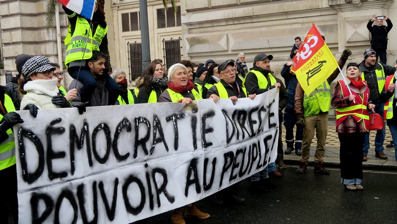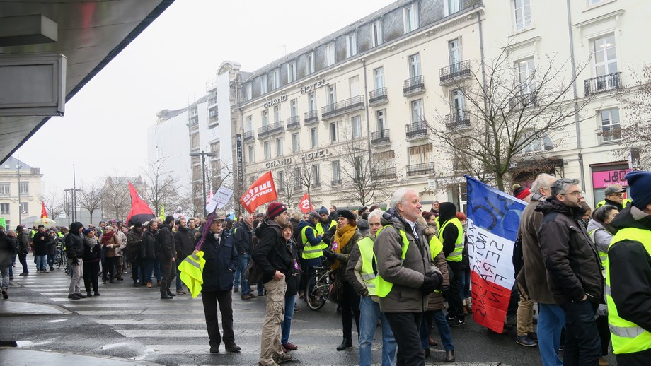 Ce 5 février 2019, à Tours, les Gilets Jaunes se sont invités à la manifestation de la CGT, qui appelait à une journée de grève de 24h « pour des hausses de salaires et davantage de justice fiscale ».