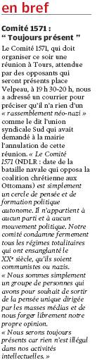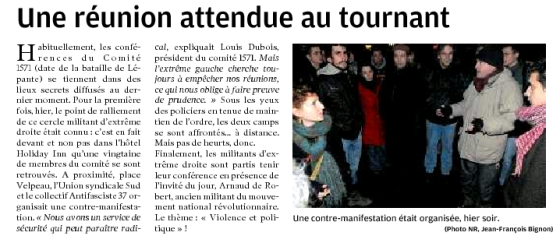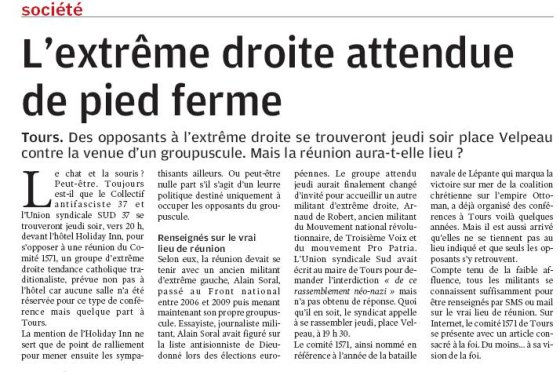 Nous pensions qu’il était souhaitable de prendre toutes les mesures qui s’imposaient afin d’interdire ce rassemblement néo-nazi à Tours et nous avions écrit au maire de Tours à cet effet. Ce dernier n’a jamais daigné nous répondre..