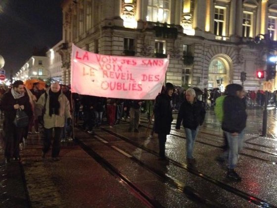 C’est au son de « Non ! non ! non ! à la fermeture ! », « Albert-Thomas ne fermera pas ! » ou « Des logements pour tous, des papiers pour tous ! », que les quelque 300 soutiens mobilisés en faveur des hébergés et salariés du foyer Albert-Thomas ont défilé, hier soir, dans les rues de Tours. Rassemblé initialement devant l’hôtel de ville, le cortège – constitué de résidents et salariés du foyer, mais aussi de sympathisants et de représentants ou élus syndicaux (Sud Solidaires, CGT) – s’est dirigé, au son des percussions et sur un bon rythme, d’abord jusqu’au Cluzel (devant la Direction départementale de l’action sociale) puis vers la gare, avant de bifurquer rue Bernard-Palissay (préfecture), place François-Sicard, rue Lavoisier (cathédrale), et de reprendre la rue Colbert jusqu’à la rue Nationale, pour terminer place Anatole-France, avant la dislocation.