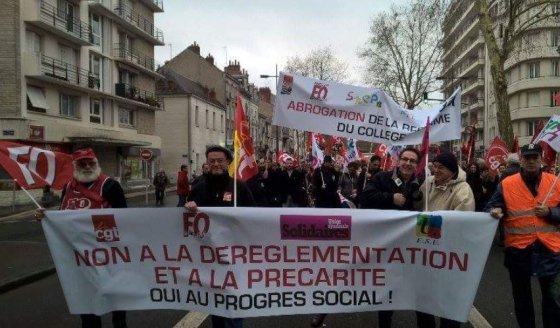 Mais la principale revendication portait sur la réforme des collèges : environ 300 enseignants avaient gonflé les rangs de la manifestation. Ils ouvraient le cortège, juste après la banderole unitaire « Non à la déréglementation et à la précarité, oui au progrès social », portant les logos de la CGT, de FO, de SUD Solidaires et de la FSU. « Rien n’a bougé du côté du ministère depuis que nous avons commencé à manifester contre cette réforme », confie Philippe Baretto de Souza, secrétaire départemental du Snes (syndicat d’enseignants du secondaire). « A la base, on commence à voir concrètement les dégâts avec les dotations horaires globales pour la rentrée prochaine. On voit que l’enseignement de l’allemand est clairement sacrifié… Par exemple, au collège Georges-Besse de Loches où j’enseigne, on va passer de 18 heures d’allemand à 11 heures ! »