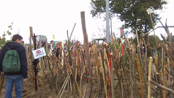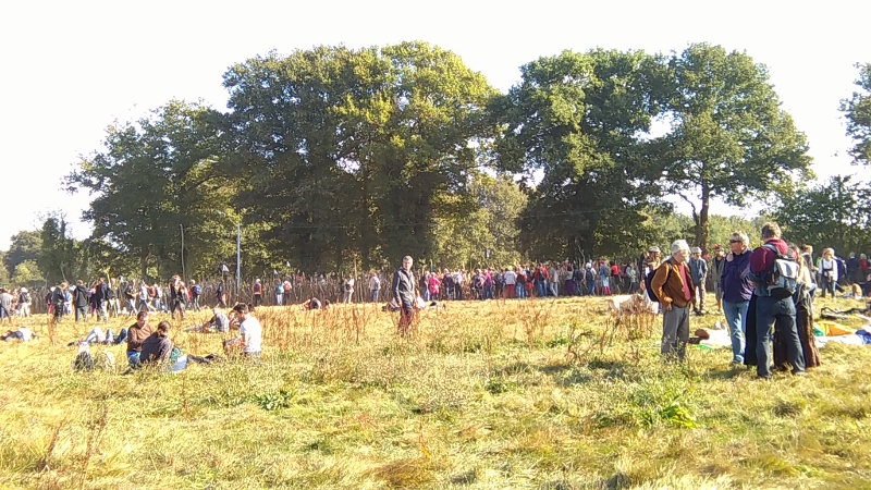 Ambiance détendue, pas de flics sur place, 40 000 personnes d’après les organisateurs en soirée, les milliers de bâtons plantés pour symboliser la préparation de la défense du site