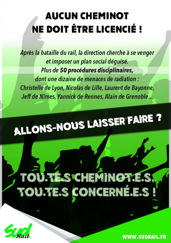 NON A LA REPRESSION SYNDICALE A LA SNCF ET AILLEURS !